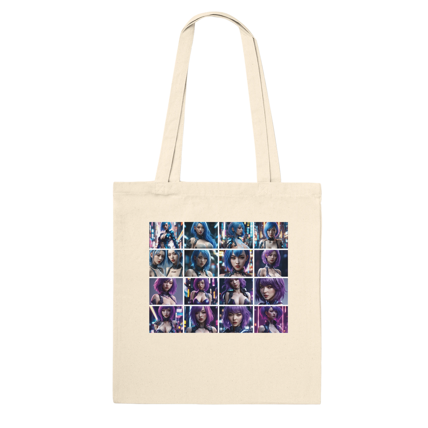 Purple-Haired Android Tote Bag Edgy and imaginative, this tote features a purple-haired android with expressive eyes and a design that leans into a dreamy sci-fi vibe. The artwork feels both otherworldly and personal, adding an artistic flair to a highly functional bag. Whether you’re heading to an art show or just running errands, this tote is the perfect blend of style, strength, and character. Carry a little bit of the future with you — one bold color at a time.